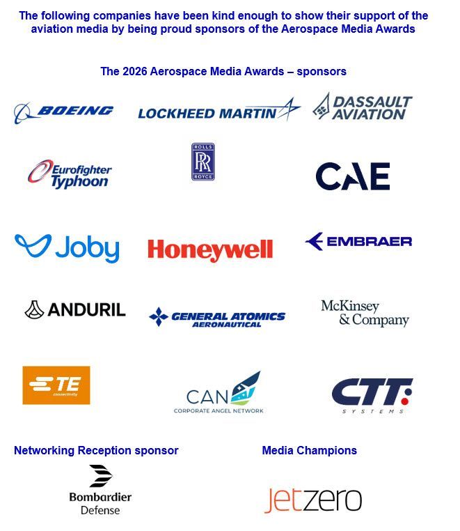 The 2026 Aerospace Media Awards will be presented in London on the evening of Sunday July 19th