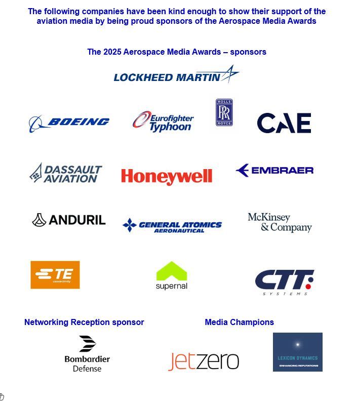 The 2025 Aerospace Media Awards were presented on the 15th June at a glittering ceremony in Paris. Please scroll down the page to see the winners and finalists for the 2025 awards